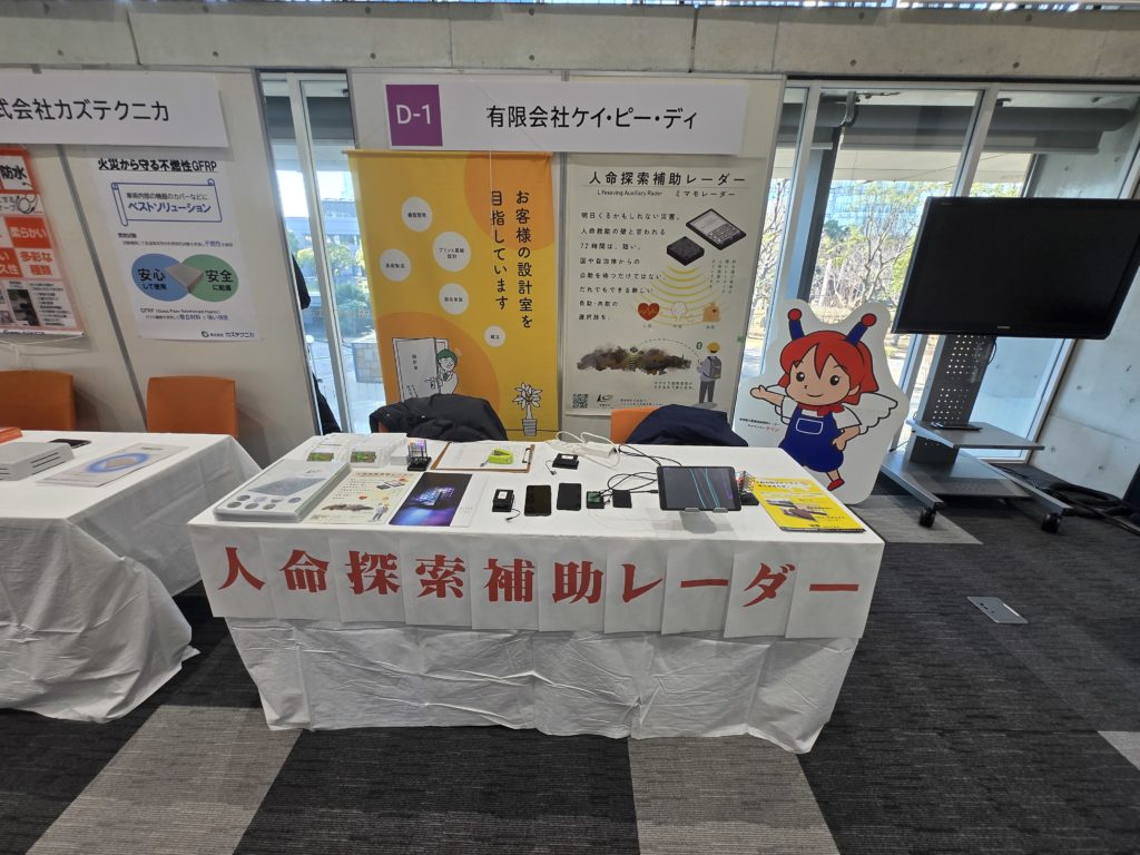 会期中には出展者発表の機会もいただき、当社の取り組みとあわせて【人命探索補助ミマモレーダー】をご紹介させていただきました。